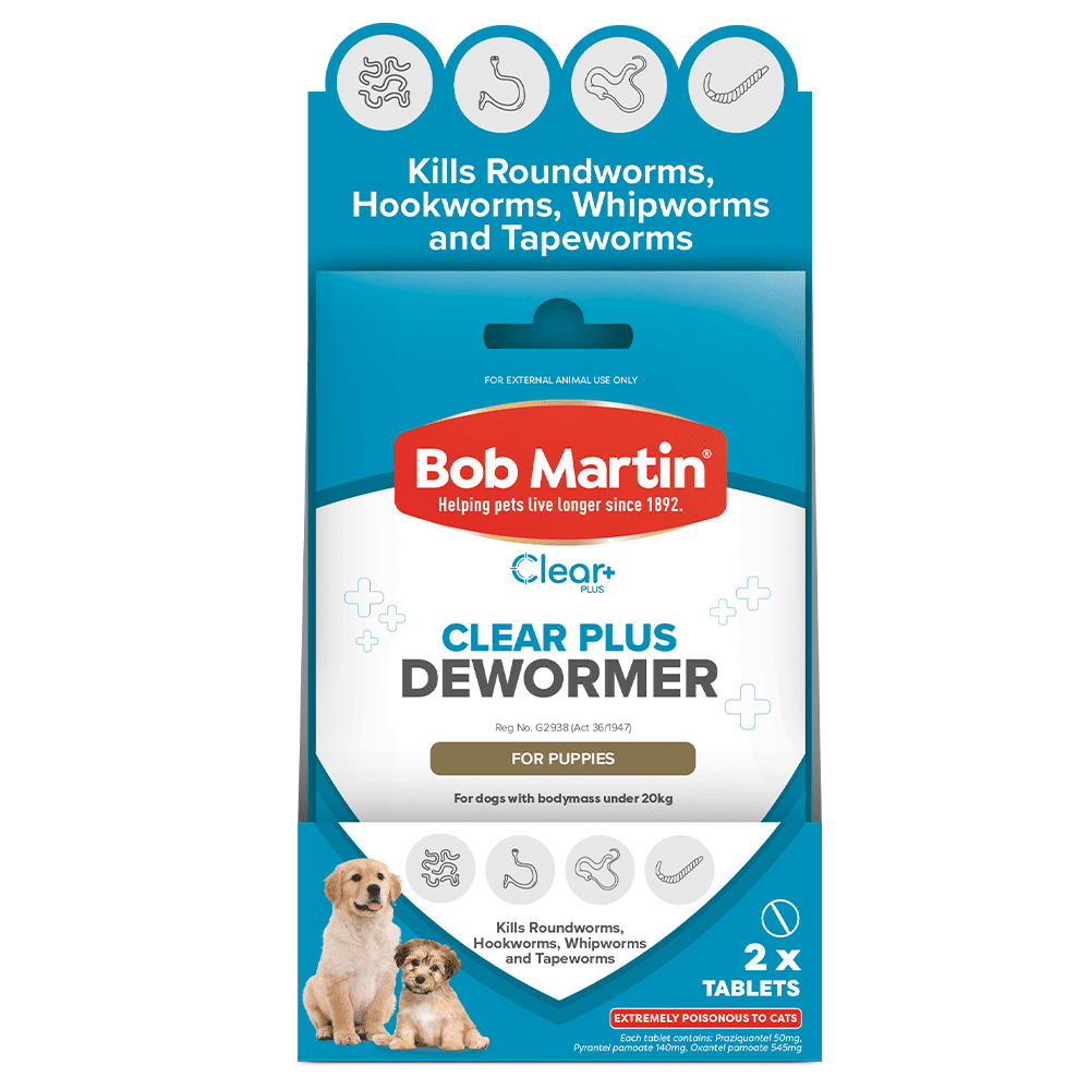 BOB MARTIN Dewormer for Puppies is a broad spectrum deworming tablet which kills Roundworms, Hookworms, Whipworms and Tapeworms including Echinococcus in dogs.
