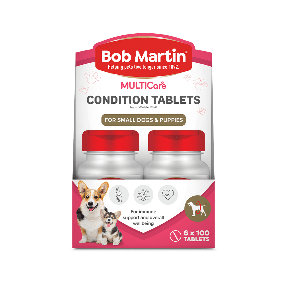 BOB MARTIN Multicare Condition Tablets contain the essential vitamins and minerals necessary to support your pet’s immunity ensuring a healthy, active life. One BOB MARTIN Muliticare Condition Tablet every day will help your best friend live a fit, healthy life. These tablets may help to prevent such disorders as a loss of appetite, lethargy, susceptibility to disease, excessive scratching and many skin disorders. Puppies and bitches in whelp require an additional supply of nutrients (2-3 tablets per day).