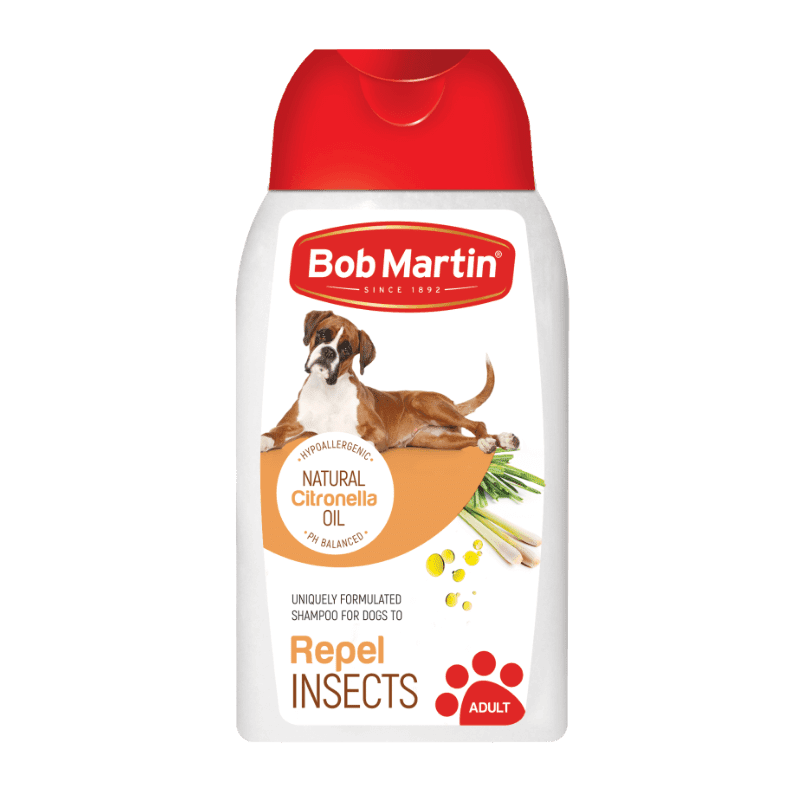 Bob Martin Natural Citronella Shampoo for repelling insects contains a gentle PH balanced and a non irritant formulation that cleans and conditions the coat. Bob Martin Citronella shampoo contains natural citronella oil that soothes the skin. Low foaming action improves the conditioning agents effectiveness. Available in 200ml.