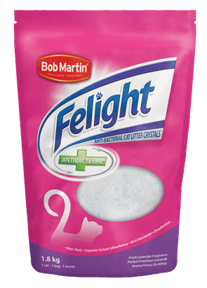 Bob Martin Felight Antibacteria Crystals revolutionises the traditional cat litter concept. The crystals’ unique high performance in absorbing all moisture inhibits bacteria growth and cat smells leaving your cat’s trays clean, fresh and dry all day long. Liquid and Odour is absorbed quickly inside the crystals. the odour is left trapped inside whilst the liquid evaporates. Bob Martin Felight Antibacterial crystals has an added fresh lavender fragrance to further enhance the freshness of your cat litter. The fresh lavender fragranced crystals will absorb those nasty odours.